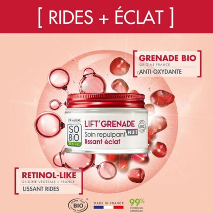 Soin repulpant NUIT Lissant éclat, LIFT’GRENADE, 50ml – So’ Bio ETIC