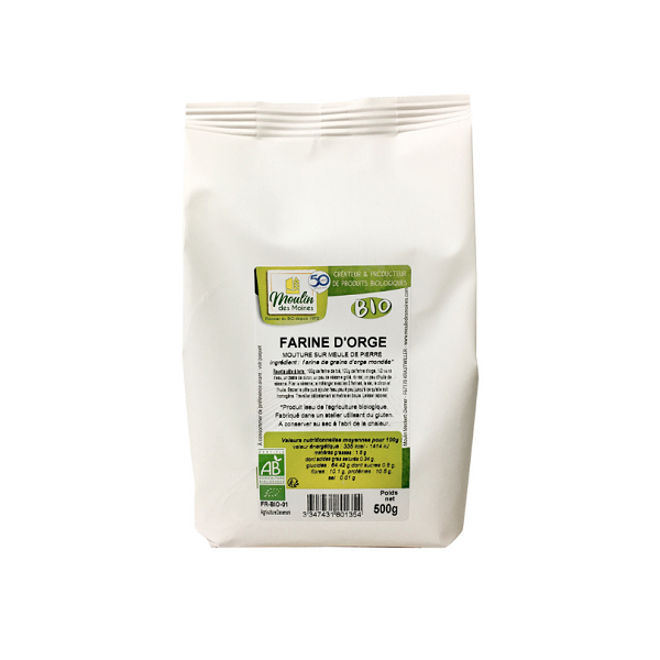 Farine d’orge complète  bio 500g – Moulin des Moines